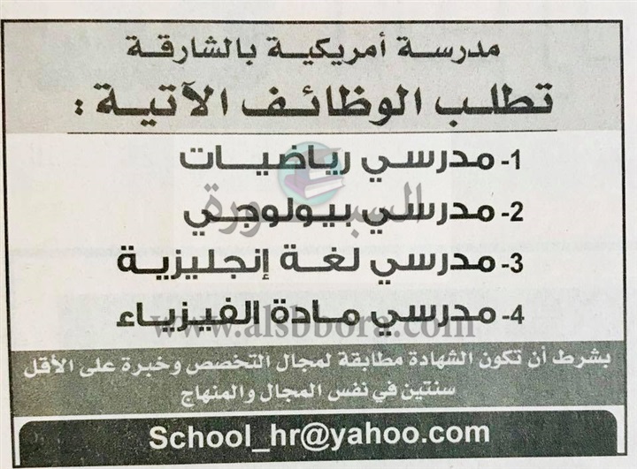 عاجل| مدارس الشارقة الإماراتية تعلن عن وظائف جديدة للمعلمين والمعلمات.. ننشر نص الإعلان