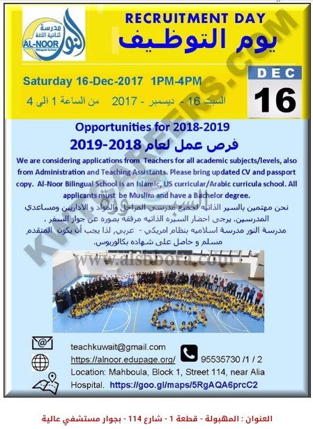 مدارس النور الكويتية تعلن عن وظائف جديدة للمعلمين والمعلمات وذلك وفقا لنص الإعلان التالي: