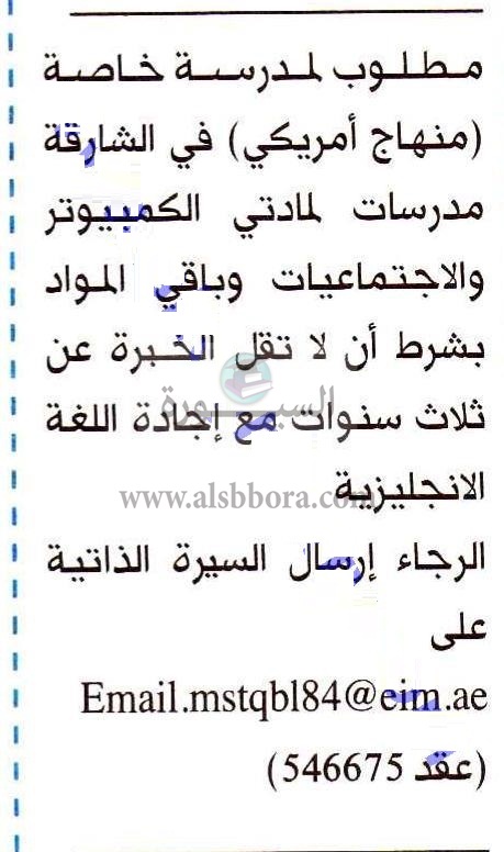 تعلن عدد من كبري مدارس الإماراتية عن وظائف جديدة للمعلمين والمعلمات وذلك وفقا لنص الإعلان التالي:-