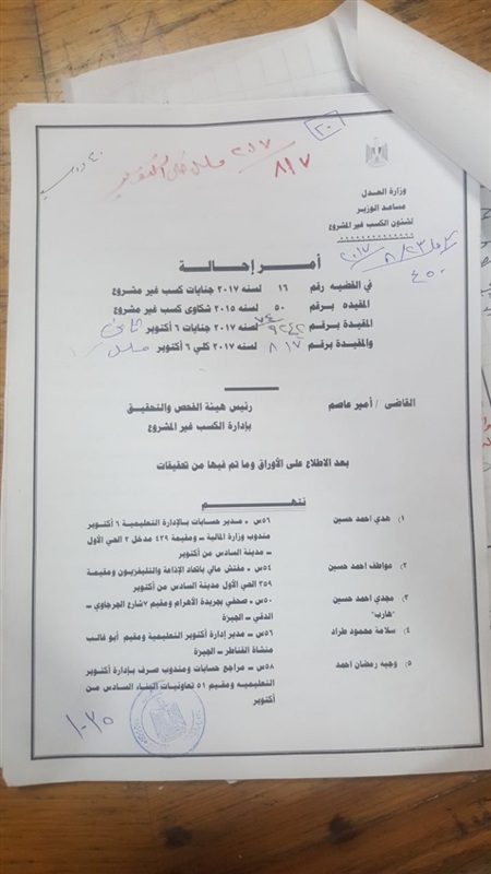 الكسب غير المشروع تحيل مدير حسابات بالإدارة التعليمية بأكتوبر للجنايات للاستيلاء على 331 مليون جنية