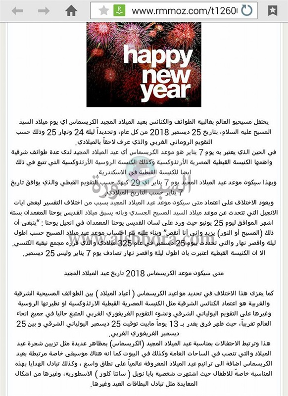 الجدير بالذكر أن الأخوة المسيحيين فى مصر يتكونون من 3 طوائف ويحتفلون فى أعيادهم بأيام ٢٤ و ٢٥ ديسمبر و١ و ٦ و ٧ و ١٩ يناير.