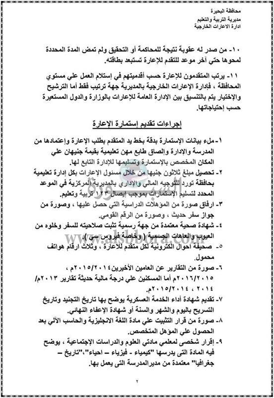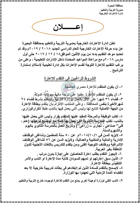 بالمستندات| تعرف على الشروط التى أعلنتها وزارة التربية والتعليم للمعلمين المعارين الى الخارج لعام 2019/2018
