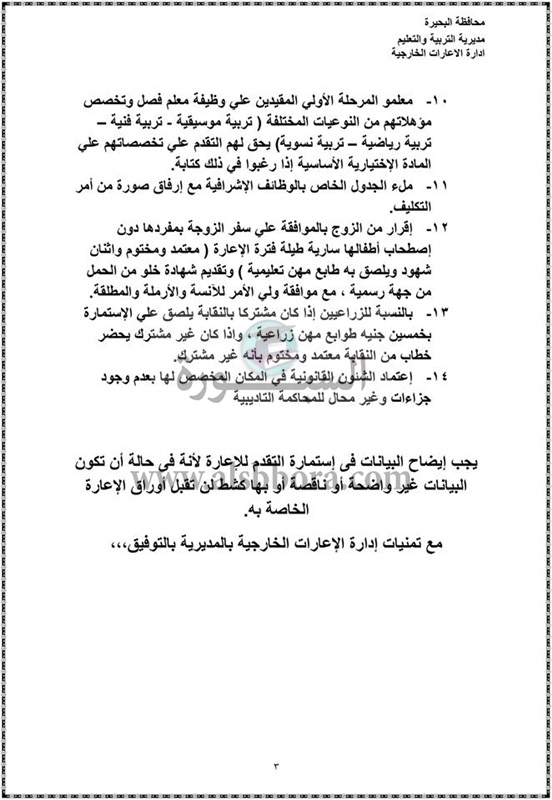 ينشر موقع السبورة الشروط التى أعلنتها ادارة الاعارات الخارجية لوزارة التربية والتعليم للمعلمين الذين يريدون التقدم للفوز بها، حيث جاءت الشروط كالتالى: