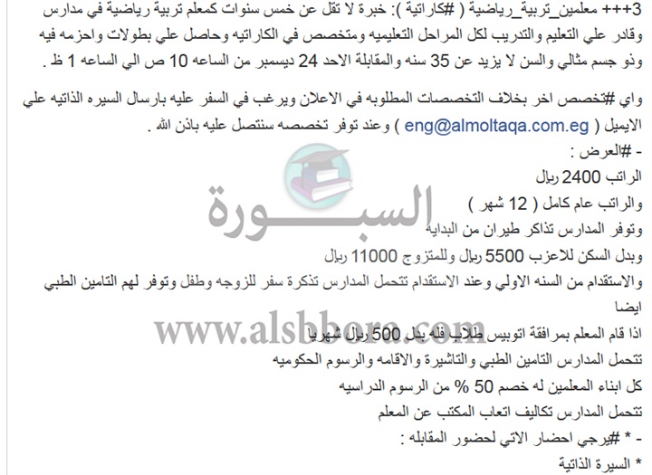 تعلن مدرسة خاصة في السعودية عن وظائف جديدة للمعلمين والمعلمات المصريين بمرتبات تصل إلي 14 ألف ريال وذلك وفقا لنص الإعلان التالي :
