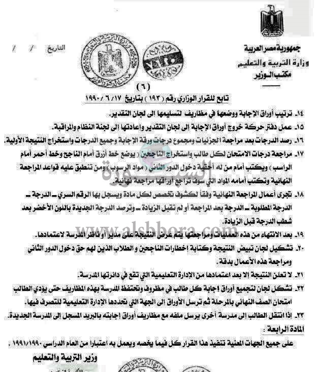 تنشر "السبورة" نص القرار 193 الخاص بالمعلمين بشأن اعمال الامتحانات والذي تضمن الاتي: