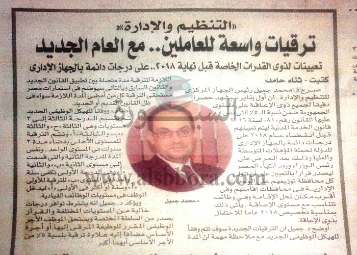 التنظيم والادارة: ترقيات واسعة للعاملين والموظفين فى الدولة مع العام الجديد
