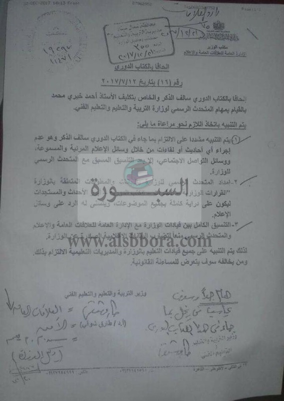 عاجل | التعليم تصدر فاكسا هاما لجميع المديريات والإدارات التعليمية والمدارس واجب النفاذ.. "ومن يخالفه يتعرض للمساءلة القانونية"