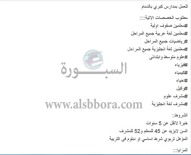 مدارس الدمام السعودية تعلن عن وظائف جديدة للمعلمين والمعلمات .. ننشر نص الإعلان