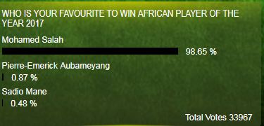 كان الموقع الرسمي للاتحاد الإفريقي لكرة القدم "كاف" اطلق رسميًا التصويت الجماهيري لجائزة أفضل لاعب في إفريقيا 2017