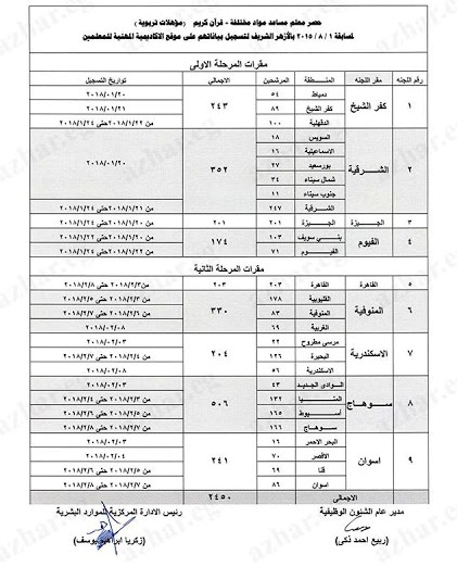 أعلن الازهر الشريف عن فتح باب التقديم والتسجيل لعدد 2450 معلم مساعد من المدرسين المتعاقدين بمسابقة الازهر الشريف 2015 والتى كانت عقودهم من 1 / 11 / 2016 حتى 1 / 1 / 2017 وحصلوا على المؤهل التربوى