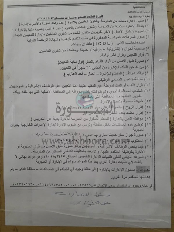 ينشر موقع السبورة الأوراق المطلوبة من المعلمين الذين يريدون التقدم الى الاعارات الخارجية للعام 2018/2017.