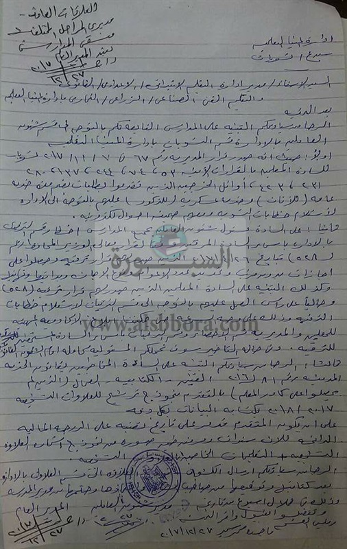 ومن المقرر أن يذهب المعلمين أصحاب قرارات 74و53و244و231و137و280و423 وأوائل الخريجين الى قسم التسويات.