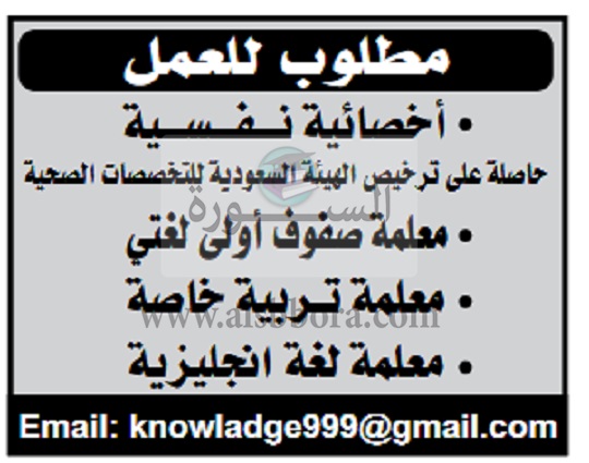 تعلن مدرسة خاصة في مملكة العربية السعودية تعلن عن وظائف جديدة للمعلمين والمعلمات بمرتبات متميزة وذلك وفقا لنص الإعلان: