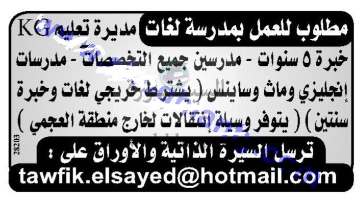 تعلن بمدارس بمصر عن وظائف جديدة للمعلمين ف جميع التخصصات واليكم نص الإعلان: