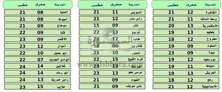وفيما يلي بيان بدرجات الحرارة المتوقعة غدا على مدن ومحافظات الجمهورية:
