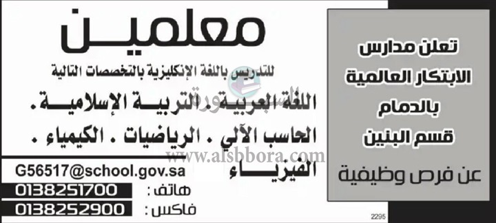 بمرتبات متميزة| مدارس الابتكار السعودية تعلن عن وظائف جديدة للمعلمين والمعلمات المصريين في 6 مواد .. ننشر نص الإعلان