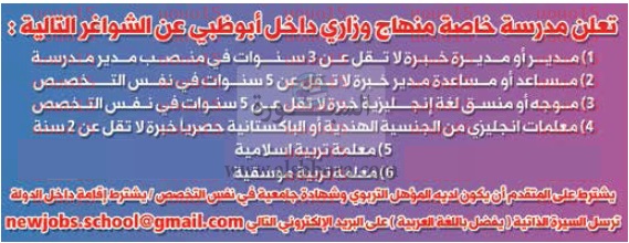 تعلن مدارس أبوظبي الإماراتية عن وظائف جديدة للمعلمين والمعلمات وذلك وفقا لنص الإعلان التالي:-