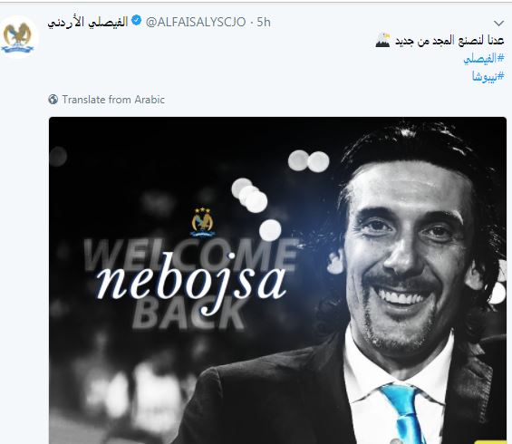 الفيصلي الأردني يعلن عودة نيبوشا لقيادة الفريق