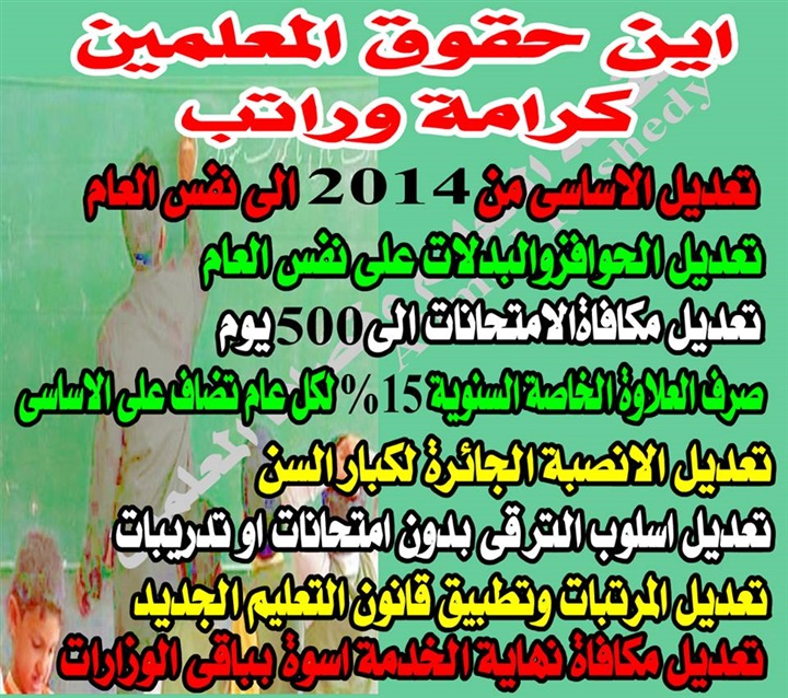تعديل المرتبات وتطبيق قانون التعليم الجديد.