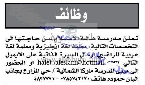تعلن "الاردن" عن وظائف جديدة للمعلمين فى التخصصات التالية "معلم لغة عربية ومعلمة لغة إنجليزية".