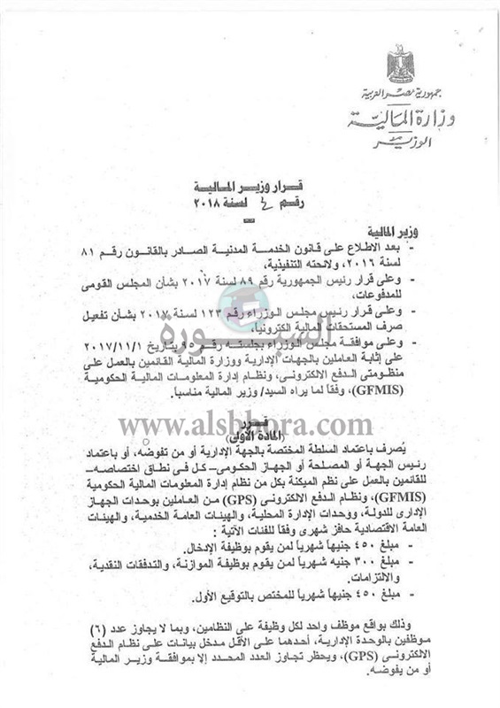 300 جنيه لمن يقوم بوظيفة الموازنة