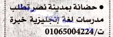 تعلن حضانة خاصة بمدينة نصر عن وظائف جديدة للمعلمات واليكم نص الاعلان: