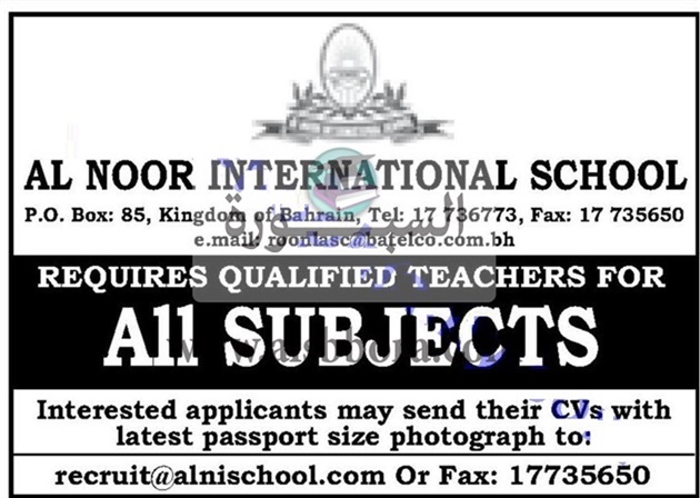 تعلن مدرسة خاصة في مملكة البحرين عن وظائف جديدة للمعلمين والمعلمات في جميع المواد وذلك وفقا لنص الإعلان التالي:-