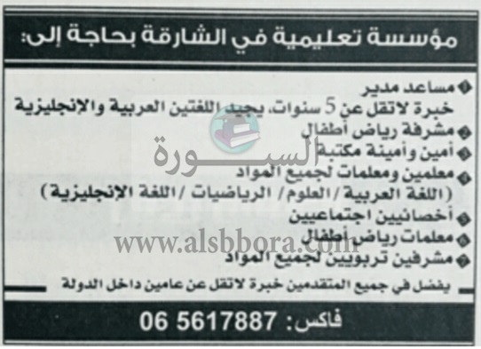 تعلن مدارس الشارقة الإمارتية عن وظائف جديدة للمعلمين والمعلمات وذلك وفقا لنص الإعلان التالي: