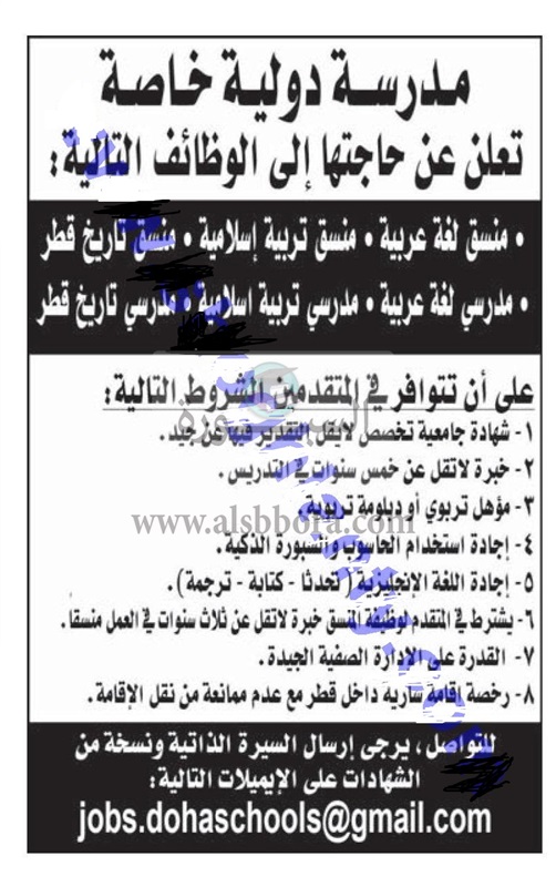 تعلن "قطر" عن حاجتها إلى معلمين في عدة تخصصات وذلك وفقا لنص الإعلان التالي:-