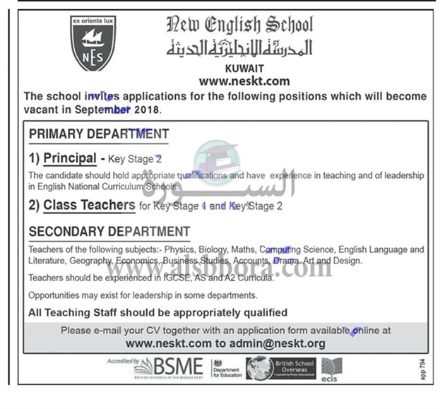 تعلن مدرسة خاصة بالكويت عن وظائف جديدة للمعلمين والمعلمات بمرتبات متميزة وذلك وفقا لنص الإعلان التالي: