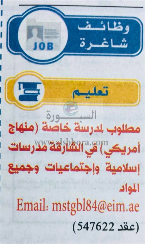 تعلن مدرسة خاصة في دولة الإمارات عن وظائف جديدة للمعلمين والمعلمات وذلك وفقا لنص الإعلان التالي: