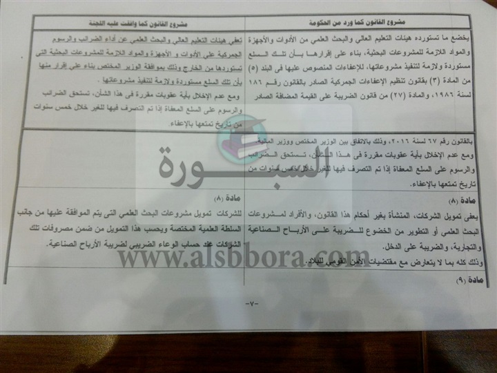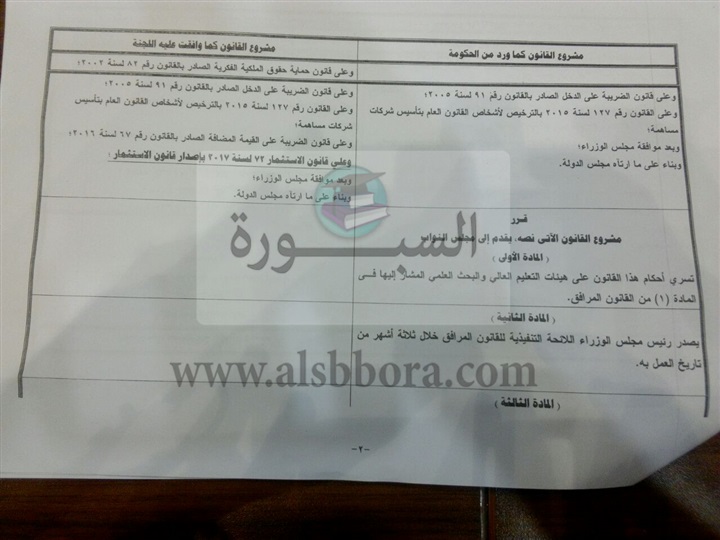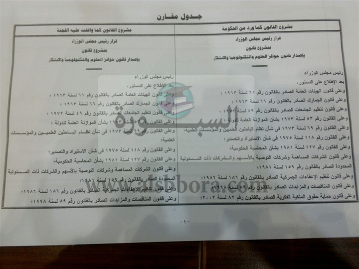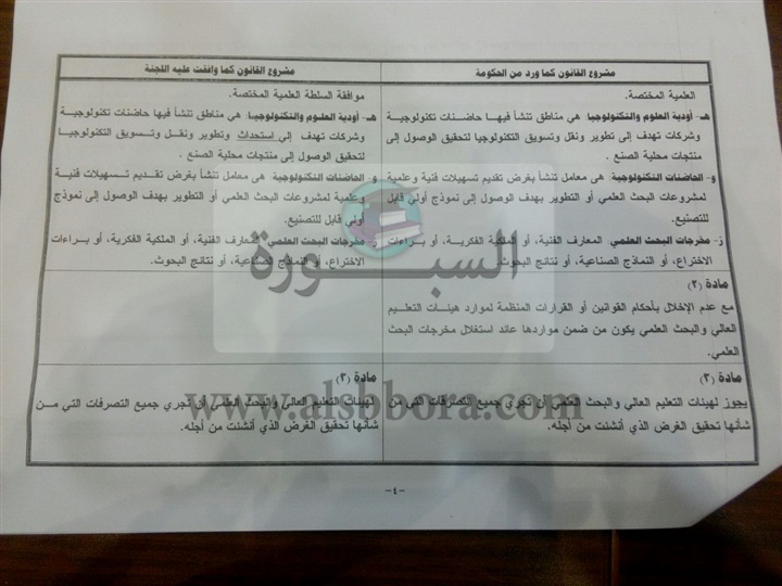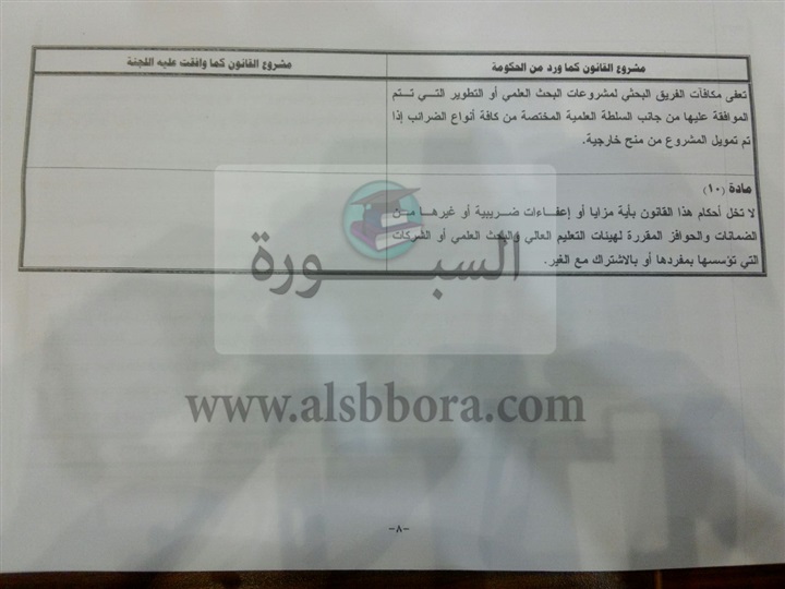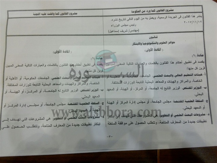 ينشر موقع السبورة نسخة من مشروع قانون الحكومة بشأن حوافز العلوم والتكنولوجيا والابتكار، والمُحال للجنة التعليم والبحث العلمى بمجلس النواب، ويضم 10 مواد.