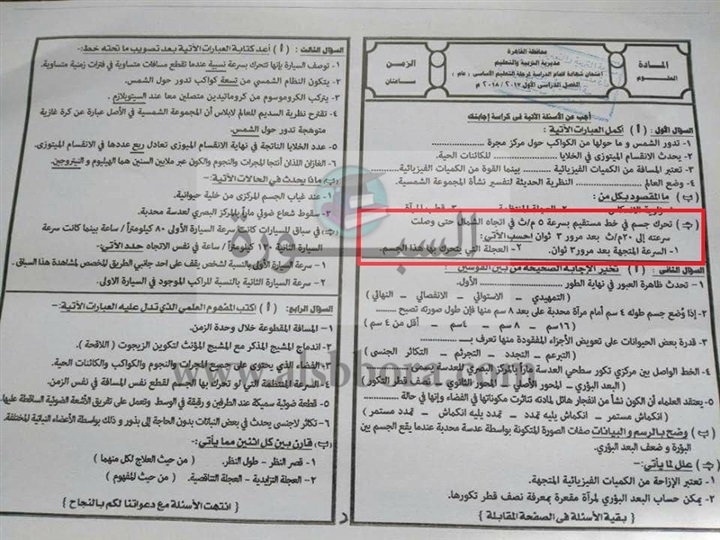 شكا العديد من أولياء الأمور والطلاب بالاضافة الى معلمين المادة من صعوبة سؤال جاء فى مادة امتحان العلوم باعدادية القاهرة، واصفين السؤال بالتعجيزى، مطالبين الدكتور طارق شوقى وزير التربية والتعليم باحالة واضعى اسئلة المادة الى التحقيق العادل، وجاء نص السؤال كالتالى: