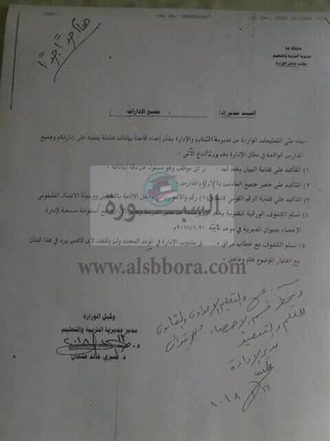 عاجل وبالمستندات| تعليمات هامة جدا جدا من التنظيم والادارة الى جميع الادارات التعليمية
