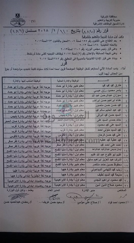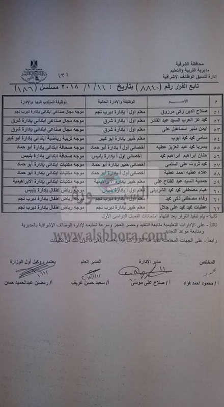 ننشر اسماء المعلمين المنتدبين وفقا للقرار رقم "8840 لسنة 2018"