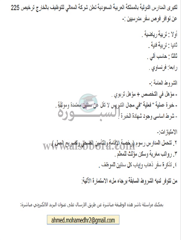 كبري المدارس السعودية تعلن عن وظائف جديدة للمعلمين والمعلمات.. ننشر نص الإعلان
