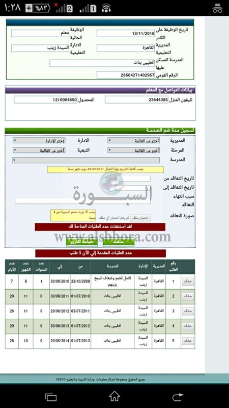 أعلنت الاكاديمية المهنية للمعلمين عن مواعيد ضم مدة الخدمة السابقة للمعلمين "معلم مساعد/ أخصائى"، وههذ الخدمة متاحة فقط للمخاطبين بأحكام القانون رقم 155 لسنة 2007 و الشاغلين حالياً لوظيفة (معلم / أخصائى)، ويمكن للمعلمين الذين تنطبق عليهم الشروط التسجيل عن طريق كود المعلم و الرقم القومى وكلمة السر الخاصة به، حتى نهاية يناير الجارى، وللدخول على الموقع للتسجيل اضغط هنااااااااااا.