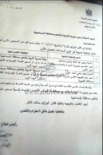 " يحيى عبد الملك" وكيلا لمديرية تعليم الإسماعيلية