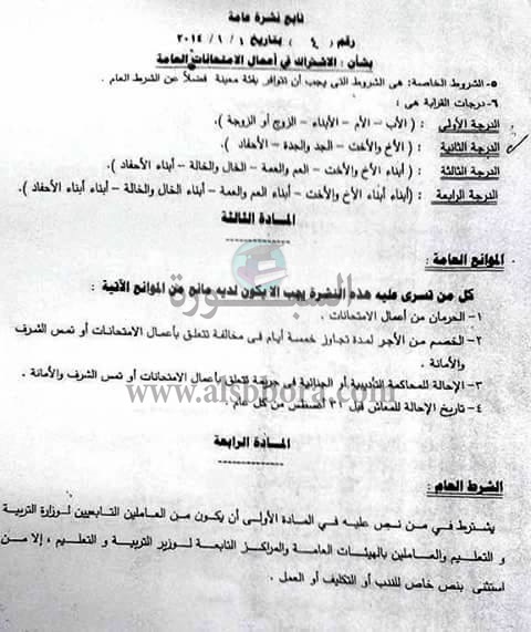 ننشر الموانع العامة لأعمال الامتحانات العامة للمعلمين حتى الدرجة الرابعة