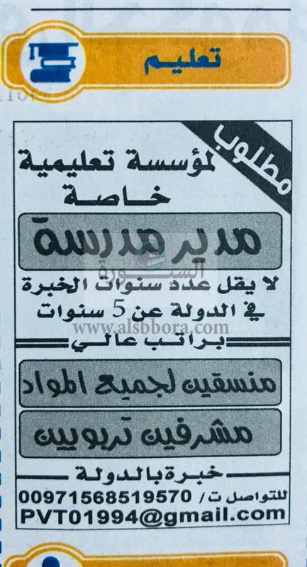 تعلن عدد من المدارس الإماراتية عن وظائف جديدة للمعلمين والمعلمات وذلك وفقا لنص الإعلان التالي:-