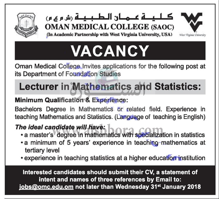 تعلن جامعة عمانية كبري عن وظائف جديدة لأعضاء هيئة التدريس "من حملة الماجستير والدكتوراه" وذلك وفقا لنص الإعلان التالي