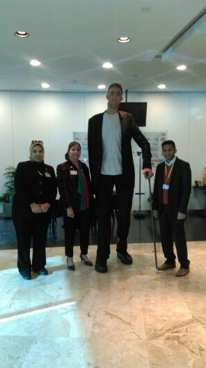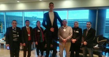 بالصور.. أطول رجل فى العالم يصل القاهرة