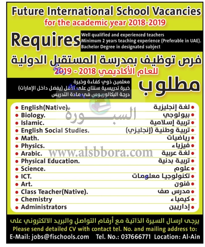 تعلن مدارس المستقبل الاإماراتية عن وظائف جديدة للمعلمين والمعلمات وذلك وفقا لنص الإعلان التالي:-