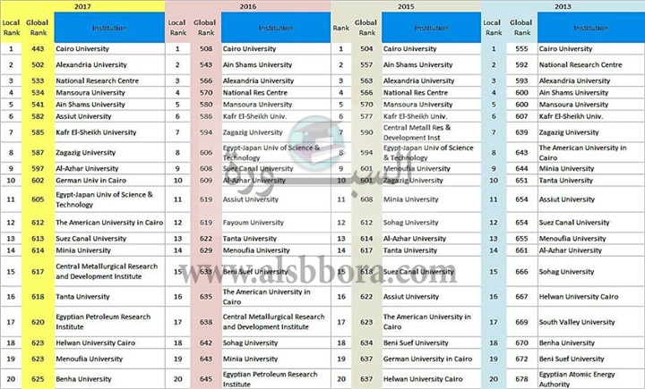 1- الجامعات من 1-7 لم تتغير في الخمس سنوات واحيانا يتغير الترتيب بينها وهي جامعات القاهرة وعين شمس والاسكندرية والمنصورة والزقازيق والمركز القومي للبحوث وكفر الشيخ.