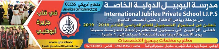 تعلن مدارس اليوبيل الاماراتية عن وظائف جديدة للمعلمين والمعلمات في جميع المواد وذلك وفقا لنص الإعلان التالي:-