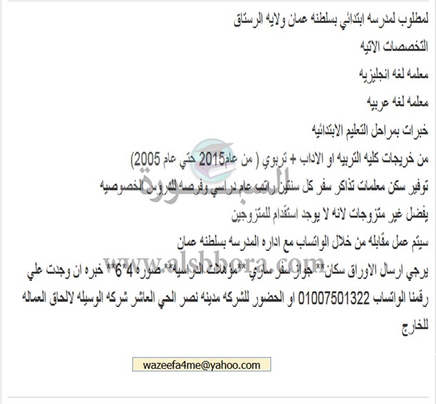 تعلن مدرسة خاصة في سلطنة عمان عن وظائف جديدة للمعلمين والمعلمات وذلك وفقا لنص الإعلان التالي:-