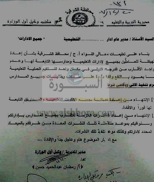 ننشر القرار الوزاري بشأن هيكلة الإدارات والمدارس والمديريات التعليمية وذلك وفقا للضوابط التالية:-