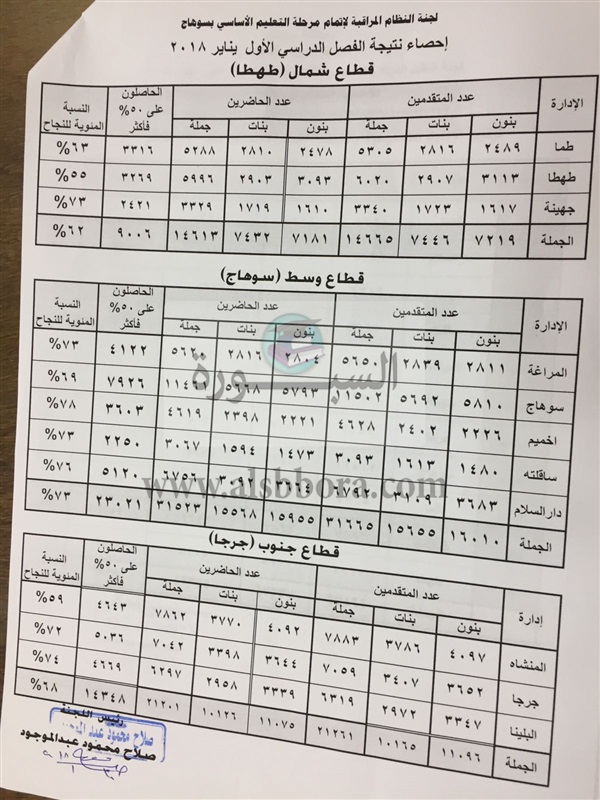 ومن جانبه قال عمر شحاته وكيل وزارة التربية والتعليم بسوهاج أن الامتحانات سارت في الوضع الطبيعى وأنه يتقدم بخالص التهنئة للطلاب الناجحين في الدور الأول ويتمنى لهم النجاح بالدور الأول .