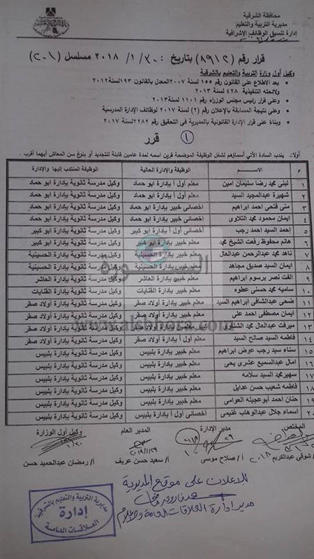 اعلنت مديرية التربية والتعليم بالشرقية نتيجة المسابقة للإعلان رقم ( 2 ) لسنة 2017 لوظائف