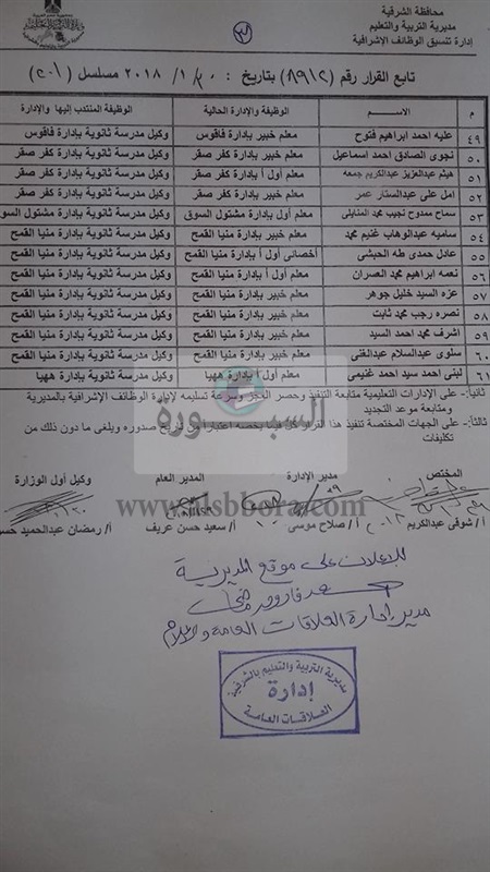 يندب السادة الآتي اسماؤهم لشغل وظيفة الادارة المدرسية